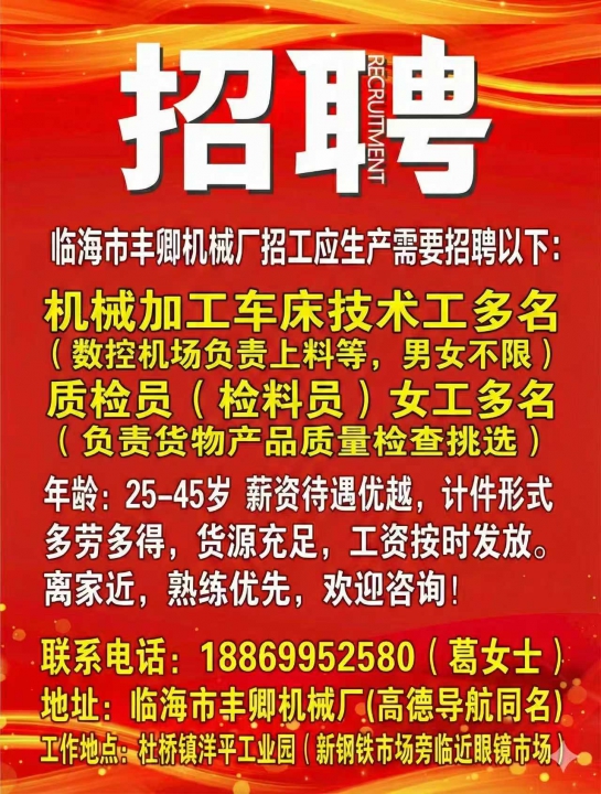 如图所示招聘机械车床技术工与质检女工